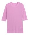 N 着丈はお尻にかかる丈感でした。袖丈は肘上です。身幅は程よいゆとりがありました。シャリ感のある肌離れの良いニットで、夏でもストレスフリーに着用できます。