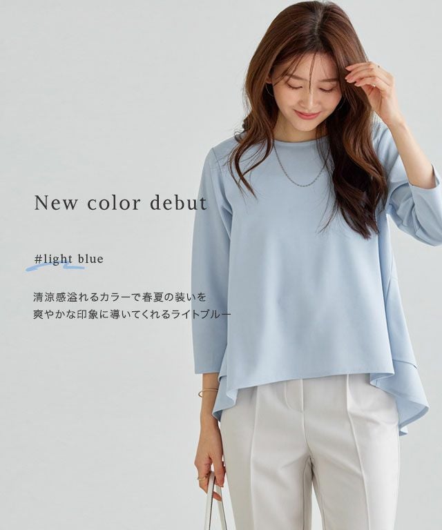 “カットソーなのにブラウス見え”を叶えるカットジョーゼット素材を使用。程良い落ち感がきちんとした印象をプラスします。