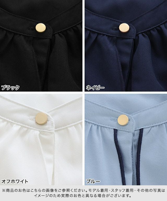 滑らかな風合いが女性らしいブラウス素材を使用。程よい落ち感が上品な印象に導き、ON/OFF着回せます。