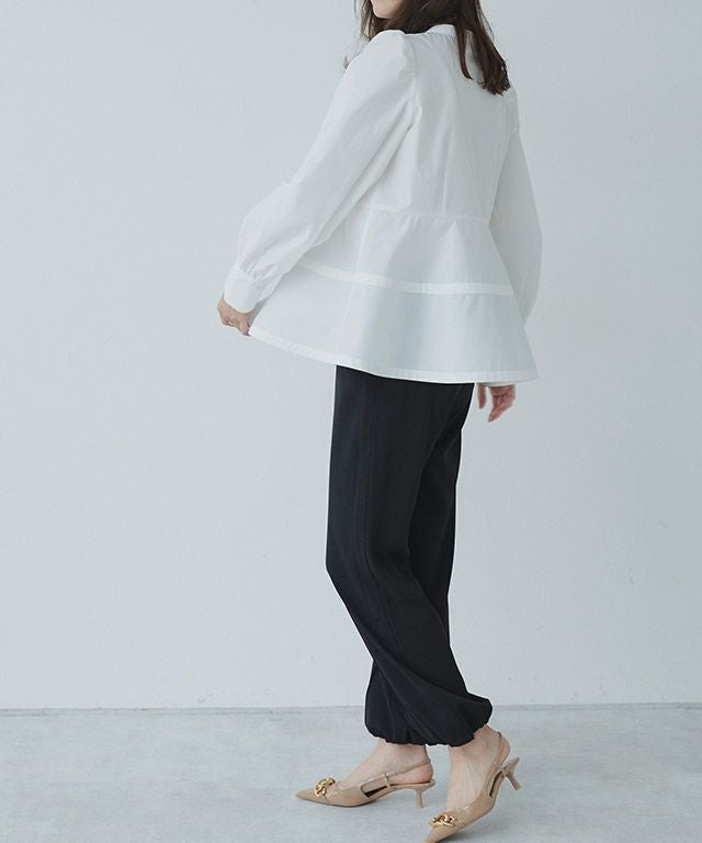 一枚で着映える“ボリュームスリーブペプラムブラウス”