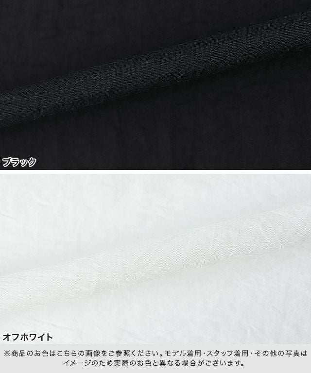 落ち感のある素材にすることでフリルでも甘すぎずカジュアルにも着やすいデザインに。シワ感のあるポリエステル素材なので、取り扱いが楽なところも嬉しいポイントです。
