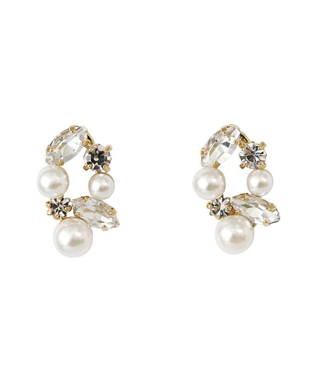 ビジューやパールをランダムに使用した、ラグジュアリーなピアス。
