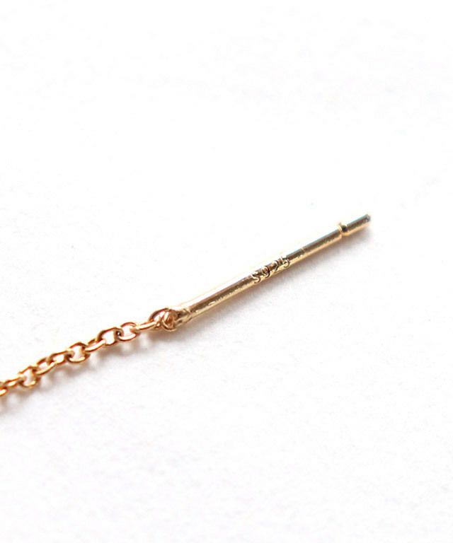 アメリカンピアスならではの揺れ感で女性らしい雰囲気を演出し、顔周りに彩を添えます。シンプルながらもチェーンを程よく長くすることで表情もあるので、スタイリングのアクセントにオススメ。