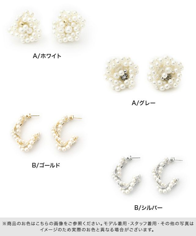 ランダムに寄せ集めたパールデザインと、フープに連なった大人っぽいデザインの2タイプ。デイリー使いにはもちろん、オケージョンでも活躍するアイテムです。