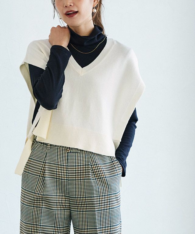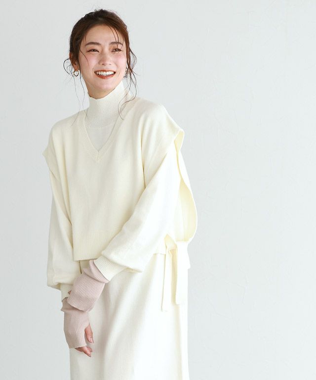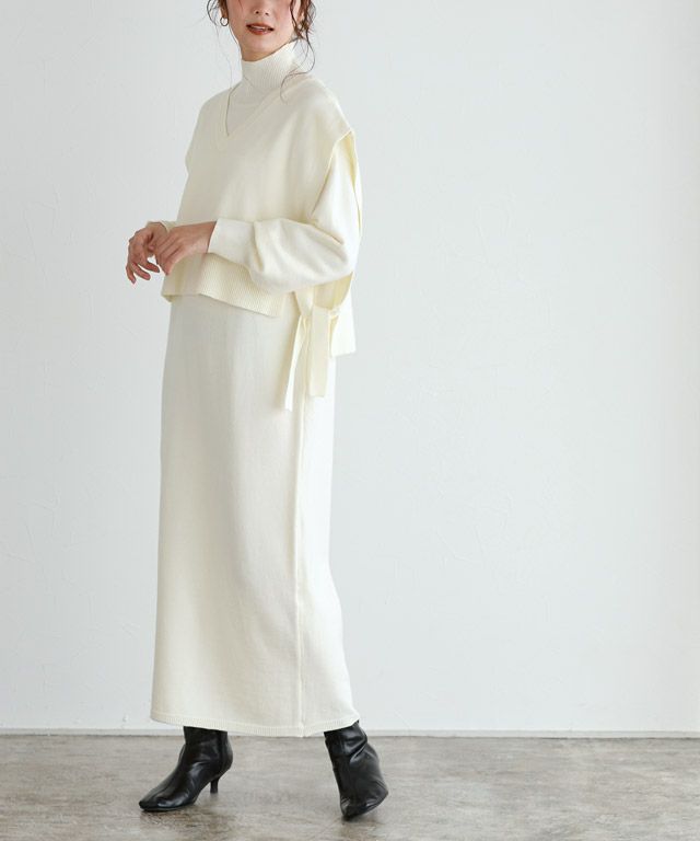 大人の旬コーデに仕上げてくれる“Vネックベスト×ワンピースセットアップ”