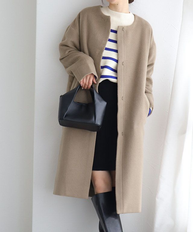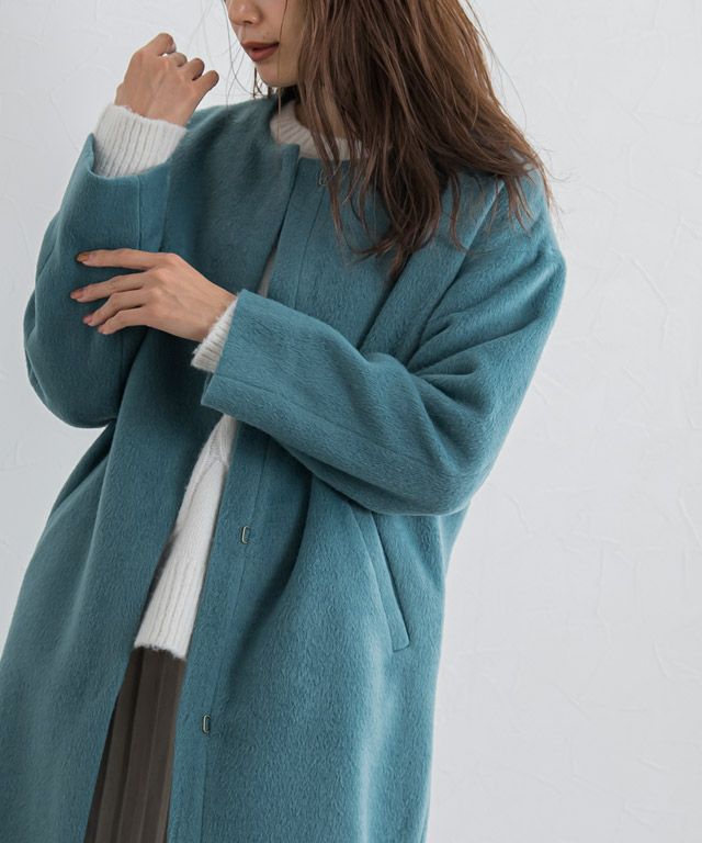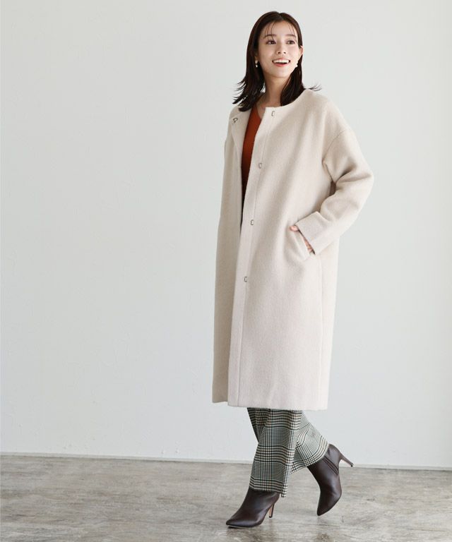 さりげないフェミニンが薫る“シャギーノーカラーコート”
