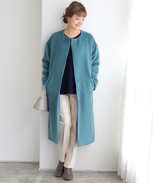 ブルーグリーン周りからも褒めてもらえていい色です♪ 154cmでSサイズ買いましたが、丈が長くバランスが悪く思えたので、コートもプチサイズあったら嬉しいなと思いました。