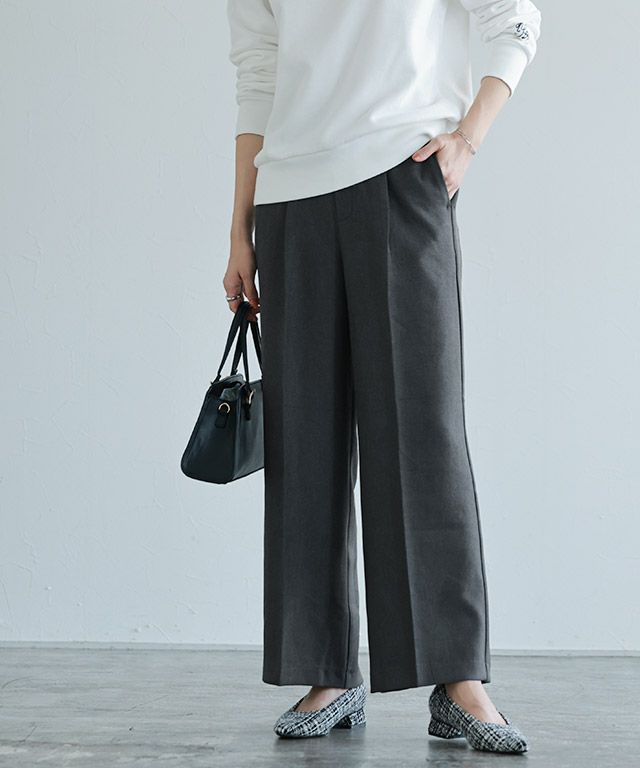 着まわしやすい大人シルエット"ウールライクタックワイドパンツ"