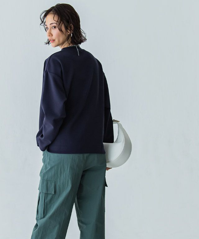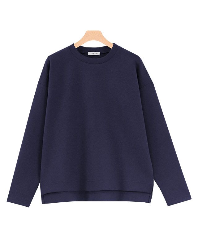 シンプルでボクシーなシルエットのプルオーバートップス。幅を太めにとったステッチやサイドスリットがベーシックな中にもアクセントをプラスしたデザインです。ゆとりを持たせたバストと、トップスアウトでも着られる丈感で、バランスの良いサイズに仕上げました。どんなボトムとも合わせやすいプルオーバーです。