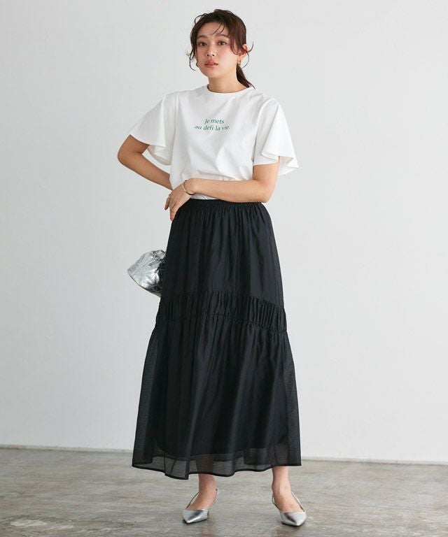 一枚で着映え感のある“【イージーケア】フレアスリーブロゴTシャツ”