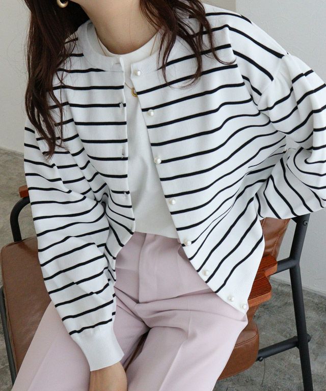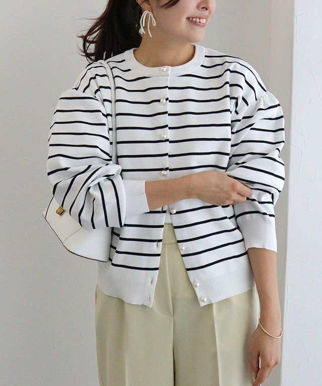 パールボタンが上品なアクセントになるカーディガン。ボリューム袖が女性らしく、きれいめにもカジュアルにも着回せるアイテムです◎ボトムスを選ばず合わせやすく、トップスとしての着用はもちろん、ボタンを開けて羽織りとしても着用できます。