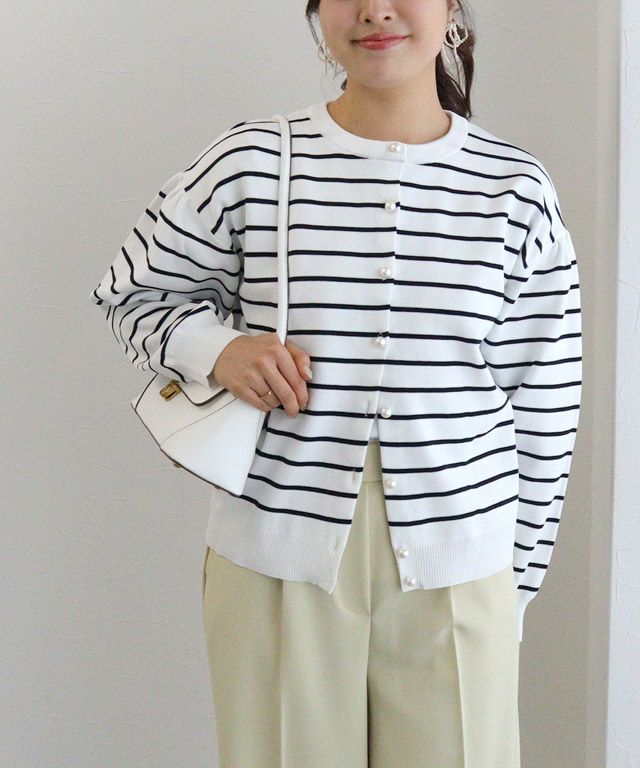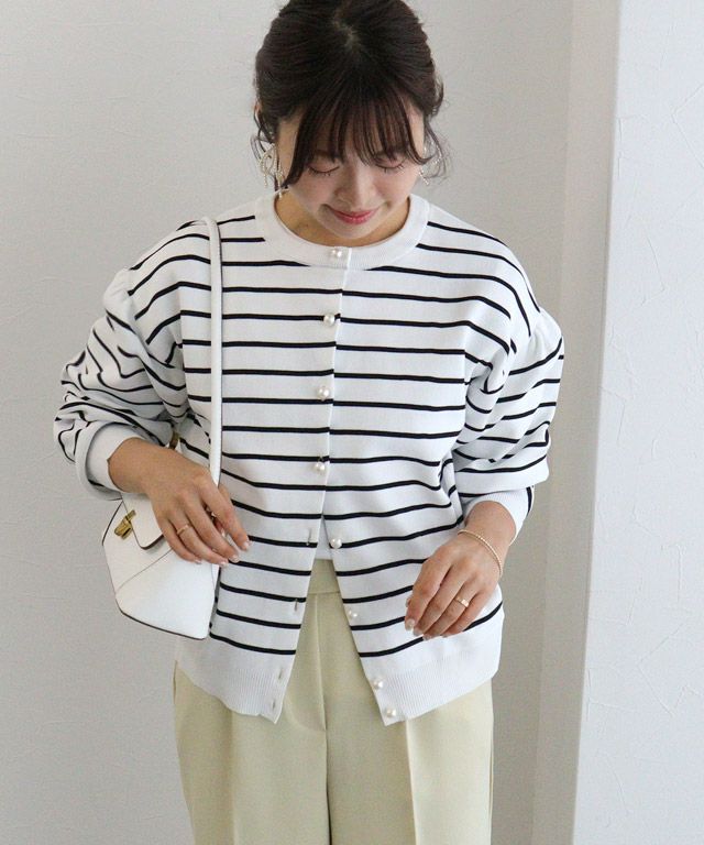 レディライクなアクセントに“スポンジニットパールボタンカーディガン”