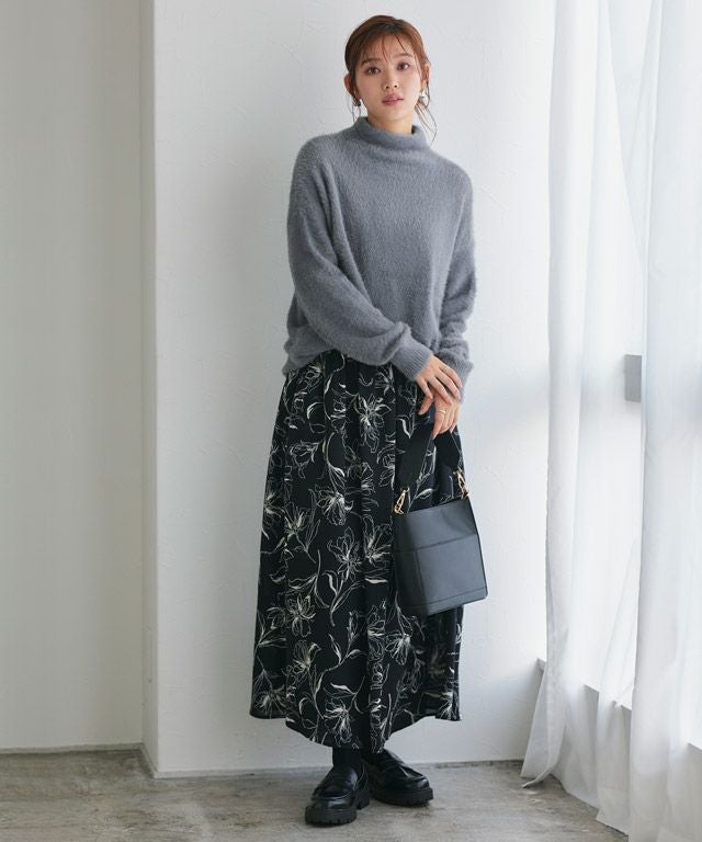 肌ざわりの柔らかな素材感と、体を拾いすぎないサイズ感が大人にもちょうどいいニット。首元がVネックとハイネックの選べるデザインでどちらも女性らしく、裾に向けてゆったりとしたデザインなので全体のシルエットに表情がでるように仕上げています。