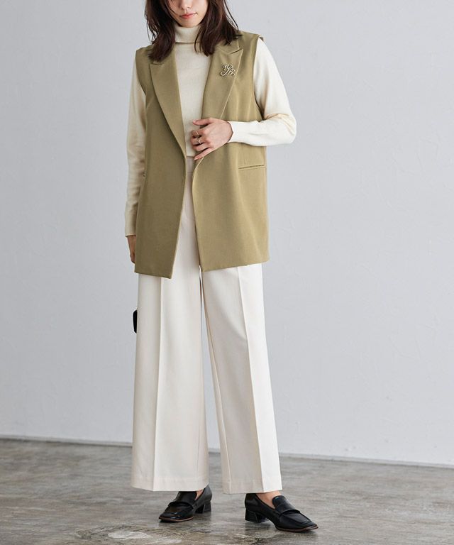 シンプルで高見えのテーラードジレです。ブローチを付けて自分なりのファッションを楽しめます♪