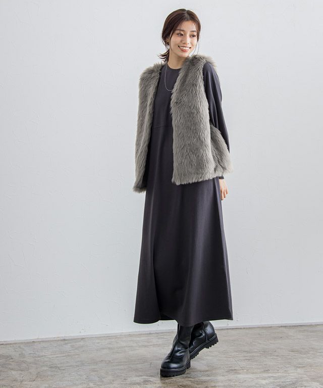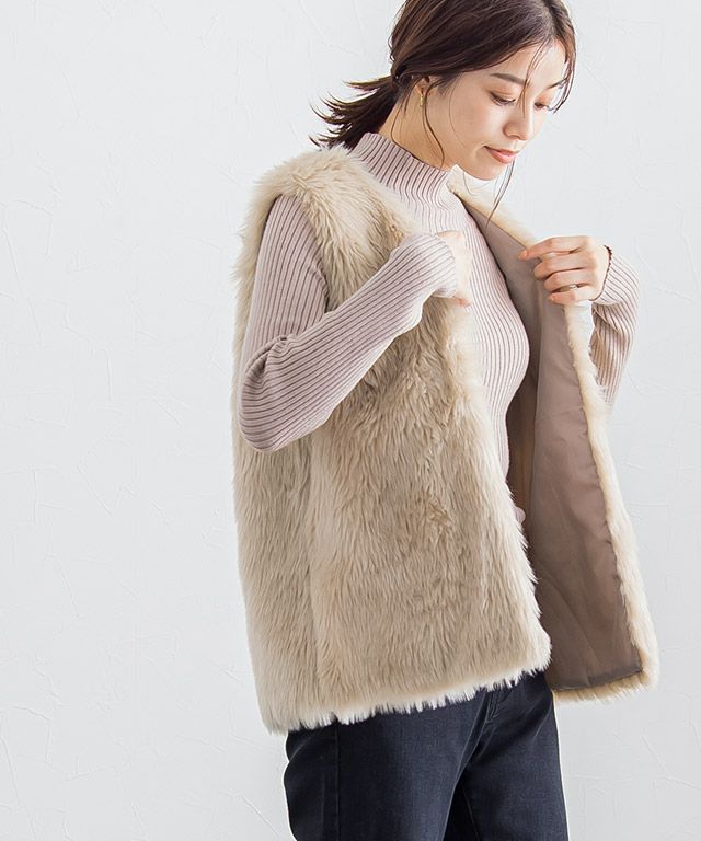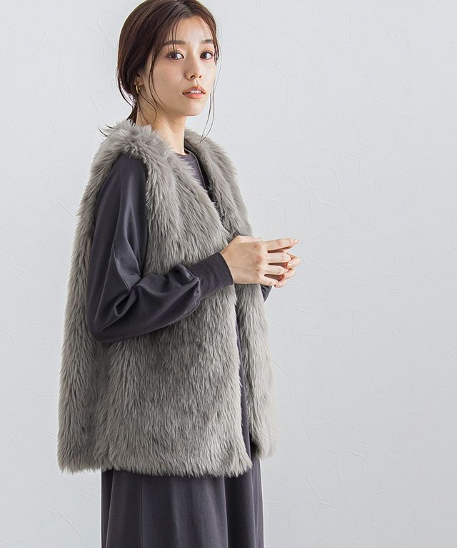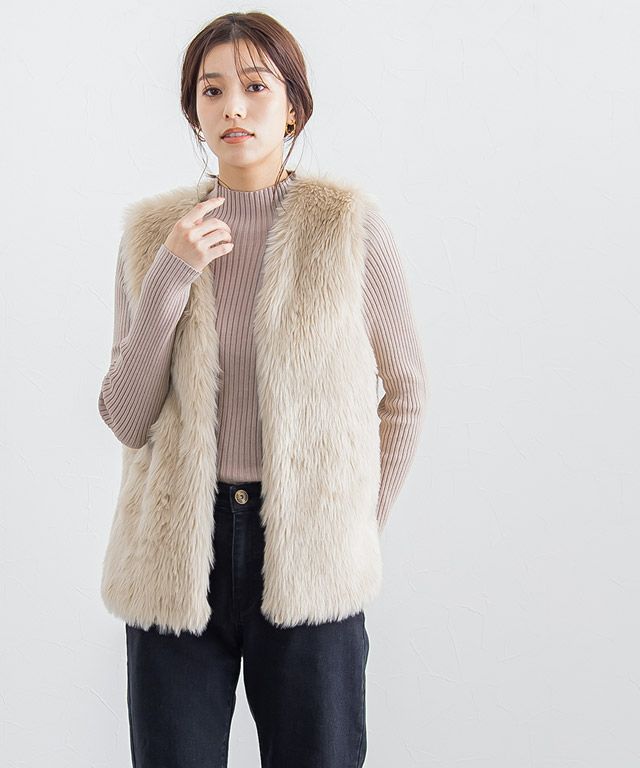 羽織るだけでコーデがランクアップ“フェイクファーベスト” シーズンムード高まるふわふわな肌触りでずっと触れていたくなるフェイクファー素材。 ノーカラーで首元はすっきりとした印象。裾はラウンドカットを施し、ヒップ回りをさり気なくカバーしてくれるデザインに仕立てました。 スカートからパンツまで幅広くバランスを取りやすい丈感です。初秋はカットソーやワンピースなどの羽織りに。肌寒い季節にはインナーにタートルネックを入れたり、コートの上から羽織ったりして、着回しを楽しめます。 【ブランド】 marvelous by Pierrot(マーベラスバイピエロ)