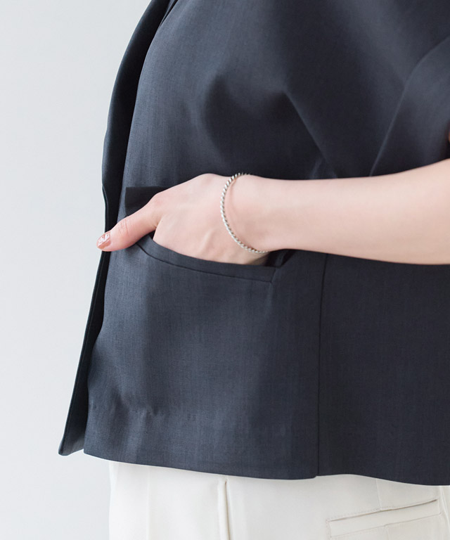 ワンプラスでこなれた装いへ導く“ハーフスリーブクロップドテーラードジャケット”