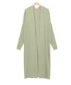 着丈は足首が見える丈感でした。袖丈は手首で留まりますが、伸ばすと手の甲がほとんど隠れます。スリットは膝上から入っています。全体的にゆったりとしたサイズ感で、サッと羽織りやすいです。やや透け感のある涼しげな素材です。