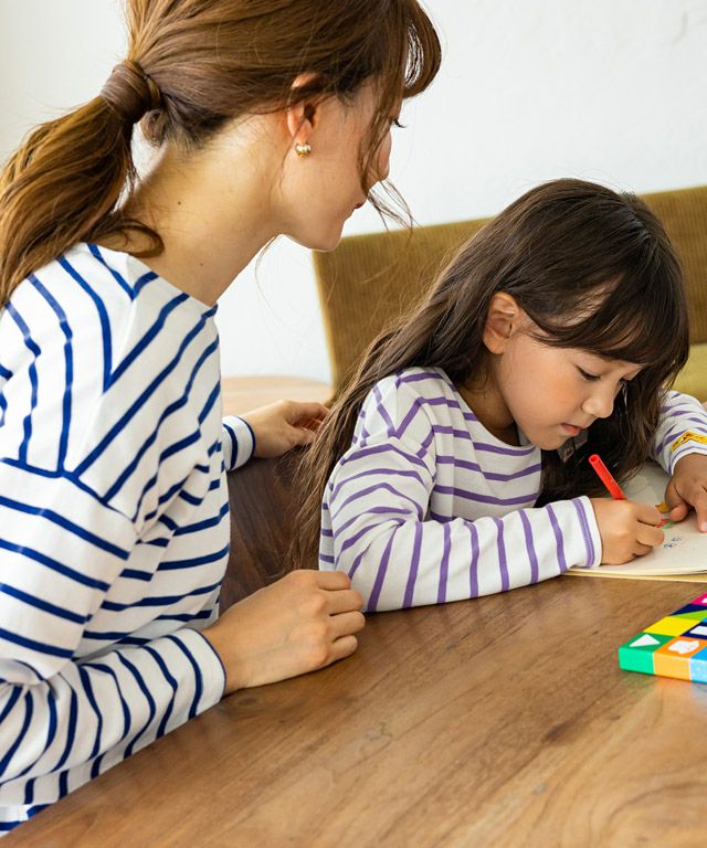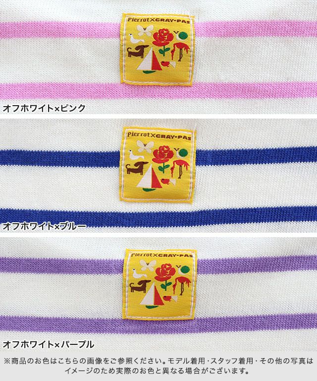 クレパスのカラーをイメージしたカラーボーダーTシャツ。鮮やかなカラーがスタイリングに華やかさをプラスします。背中のオリジナルネームが可愛いワンポイントに◎