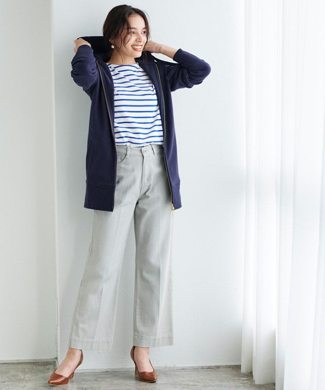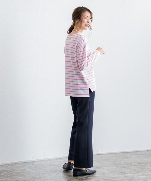 L 着丈はお尻にかかる丈感でした。袖丈は手首ちょうどです。身幅はゆとりがありました。さらっとした生地で着心地が良いです。ボーダーがコーデにアクセントを加えてくれます。