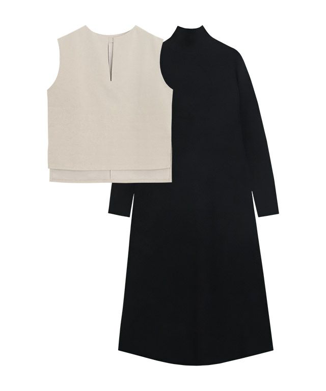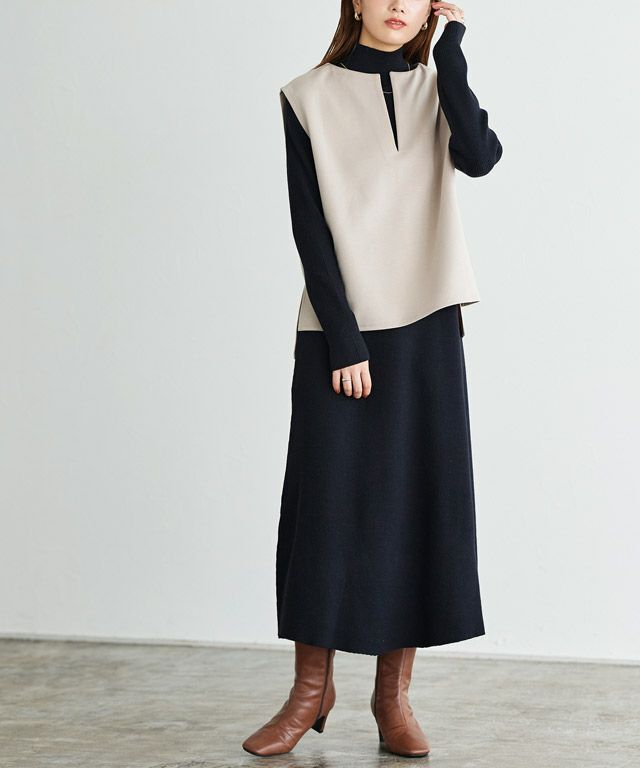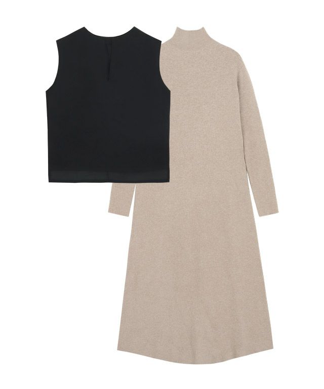 一枚でこなれた着こなしに“ベスト×リブニットワンピースセット”