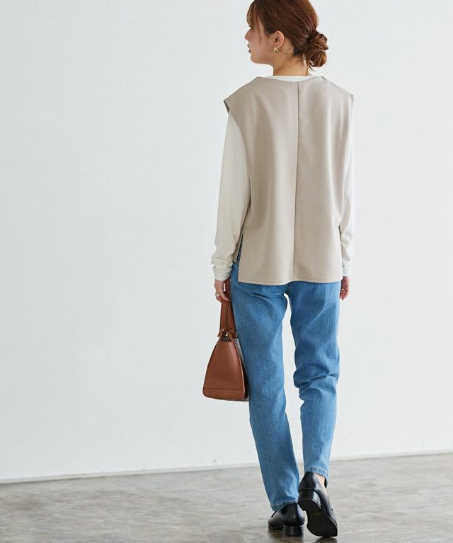 H [ベスト(PM)]着丈はお尻が半分隠れる丈感でした。袖丈は肩が隠れます。身幅は程よいゆとりがありました。脇口周りも広いのでレイヤードしやすいです。