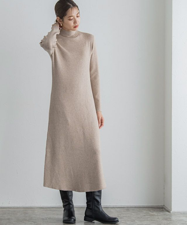 [ワンピース(M)]着丈は足首ちょうどの丈感でした。袖丈は手の甲がほとんど隠れます。身幅は程よいゆとりがありました。少し長めが好きなのでMサイズを選びます。ロングブーツ合わせるときはPMサイズを選びます。