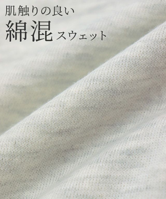 シワになりにくく、さらりとした肌触りが魅力の綿混スウェット素材を使用。柔らかな風合いでリラックス感のある着心地ながら、シーズンレスで活躍します。