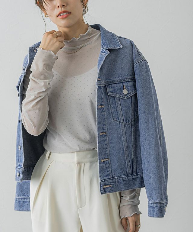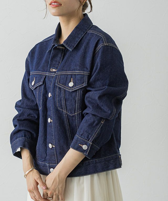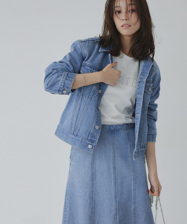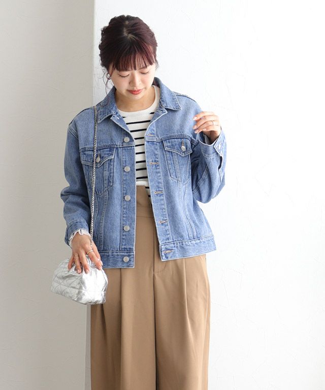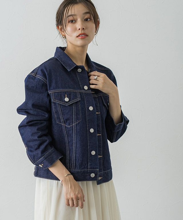 綿100%のさらっとした素材が素肌に優しく、程良いハリ感もあるため綺麗なシルエットをキープ。カジュアルすぎないウォッシュ加工が大人の女性に似合うポイントに。 ややルーズなシルエットがこなれた印象のデニムジャケット。トレンドに左右されずベーシックに着用しやすいシンプルなデザインに仕上げました。どんなスタイルにも取り入れやすく、ロングシーズン活躍する一枚です。 【ブランド】