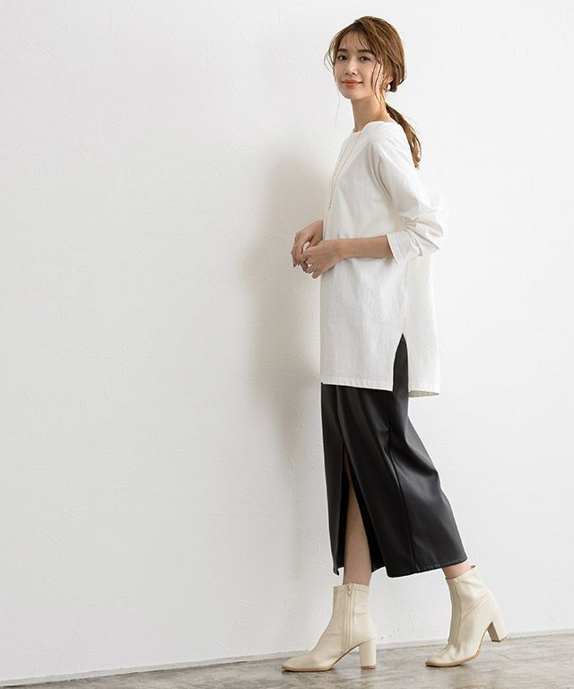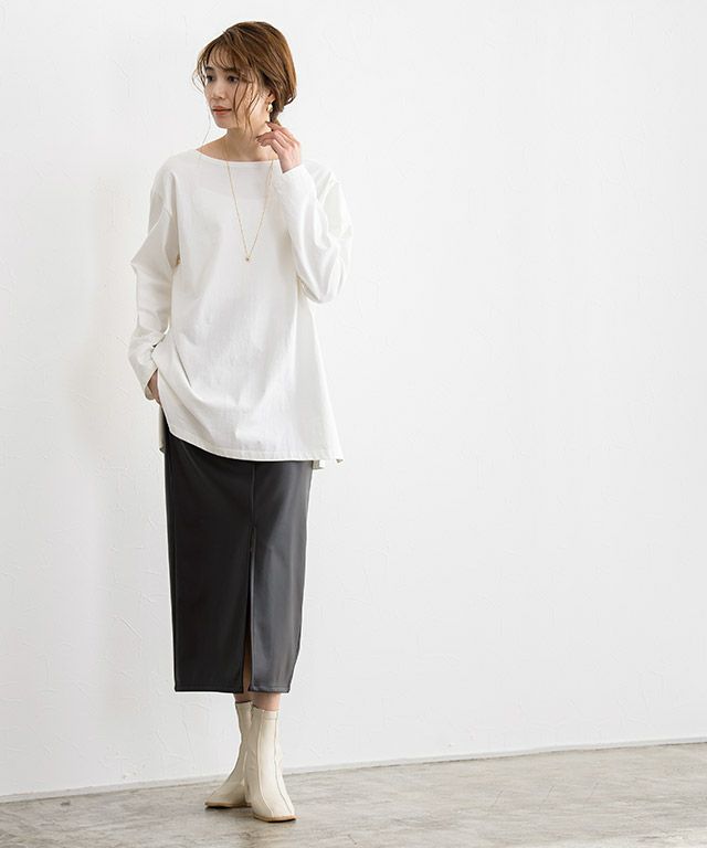 ゆったりとしたサイズがルーズなお洒落さを演出し、体型カバーも叶えてくれる一枚。お尻が隠れる丈感ですがサイドにスリットを入れることで抜け感をプラスしました。