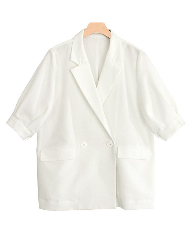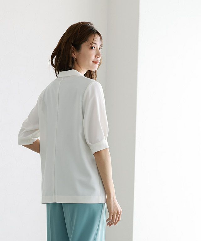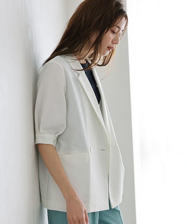 丸みのあるパフスリーブが着映えるデザインジャケット。かっちりしすぎず、程良くカジュアルな抜け感をプラスしてくれます。同素材のハーフパンツと合わせてセットアップでの着用もおすすめです。