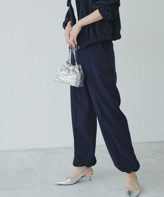 裾を絞らなければストレートシルエットで、きちんと見えを叶えるデザイン。裾のコードを絞るとシルエットを変えることができ、スタイリングを楽しむことができます。絞った際にコードが裾から出ない仕様もこだわりポイントの一つ。ON/OFFのスタイリングが楽しめます。
