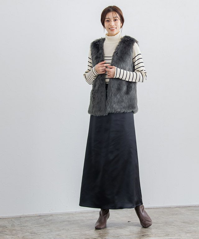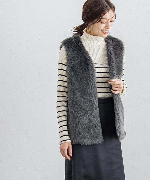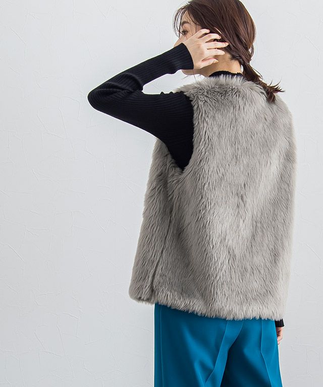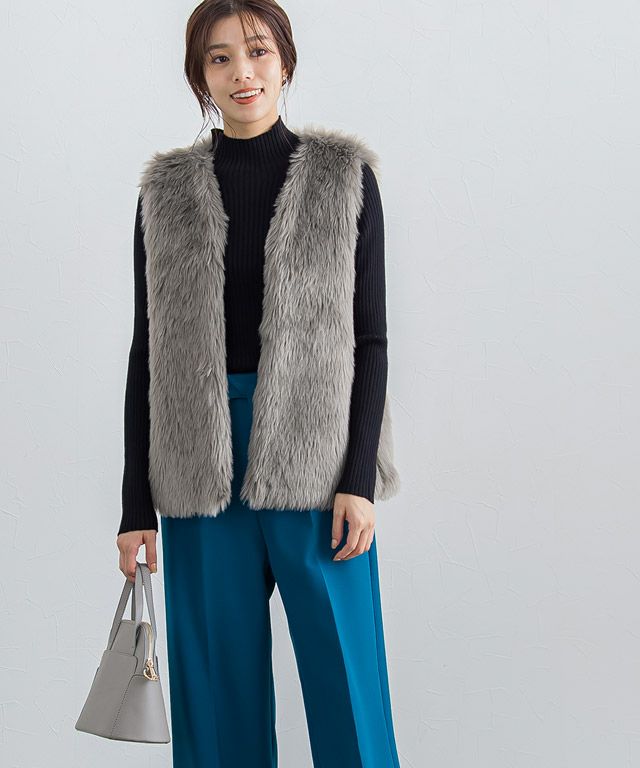 羽織るだけでコーデがランクアップ“フェイクファーベスト” シーズンムード高まるふわふわな肌触りでずっと触れていたくなるフェイクファー素材。 ノーカラーで首元はすっきりとした印象。裾はラウンドカットを施し、ヒップ回りをさり気なくカバーしてくれるデザインに仕立てました。 スカートからパンツまで幅広くバランスを取りやすい丈感です。初秋はカットソーやワンピースなどの羽織りに。肌寒い季節にはインナーにタートルネックを入れたり、コートの上から羽織ったりして、着回しを楽しめます。 【ブランド】 marvelous by Pierrot(マーベラスバイピエロ)