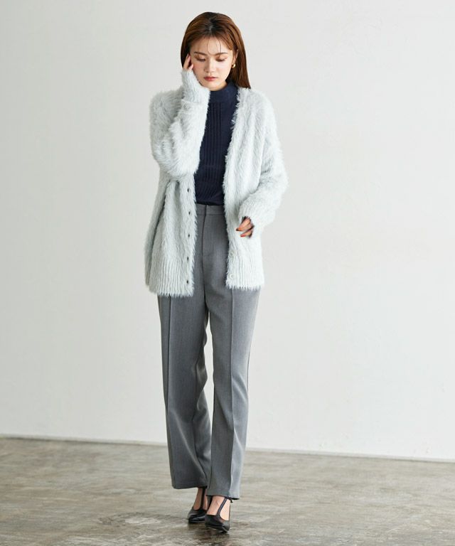 また、ニット製品は生産の過程上「生地を織る際の糸の継ぎ目」繊維の「混紡」、プレス加工、製品洗い加工によって形やサイズ(5cm前後)に誤差が生じる場合がございますが品質上の問題はございません。