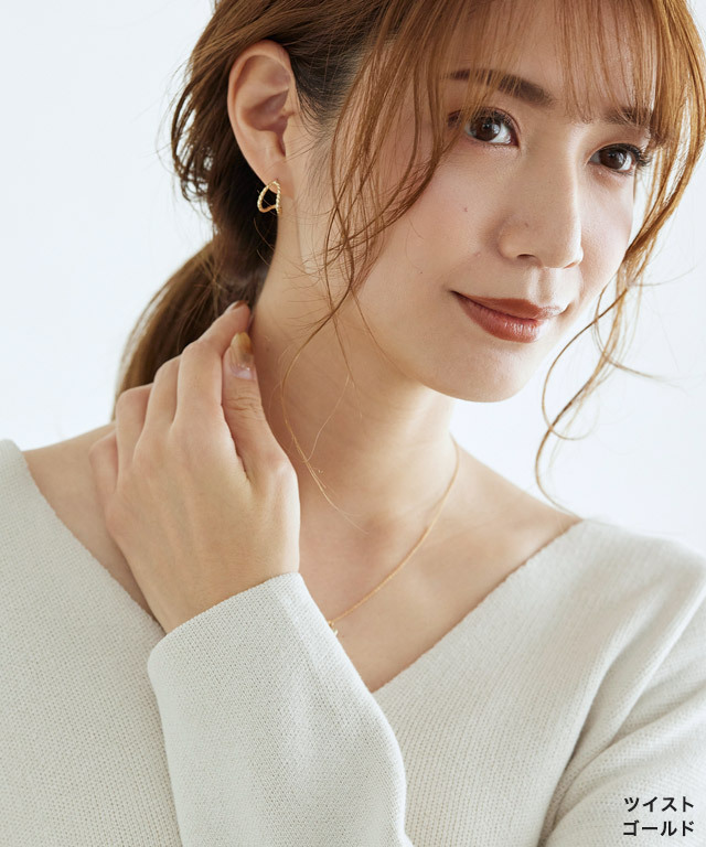細めの線形フープにカーブを加えたメタルパーツ。コーティングはツヤ感のあるゴールドとシルバーで仕上げました。