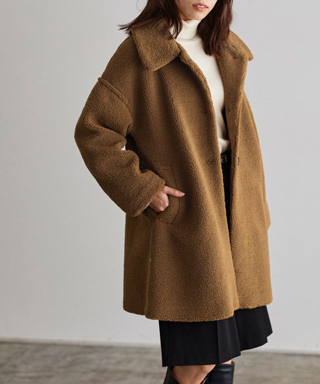 羽織るだけでトレンドムード漂う“ボアステンカラーコート”