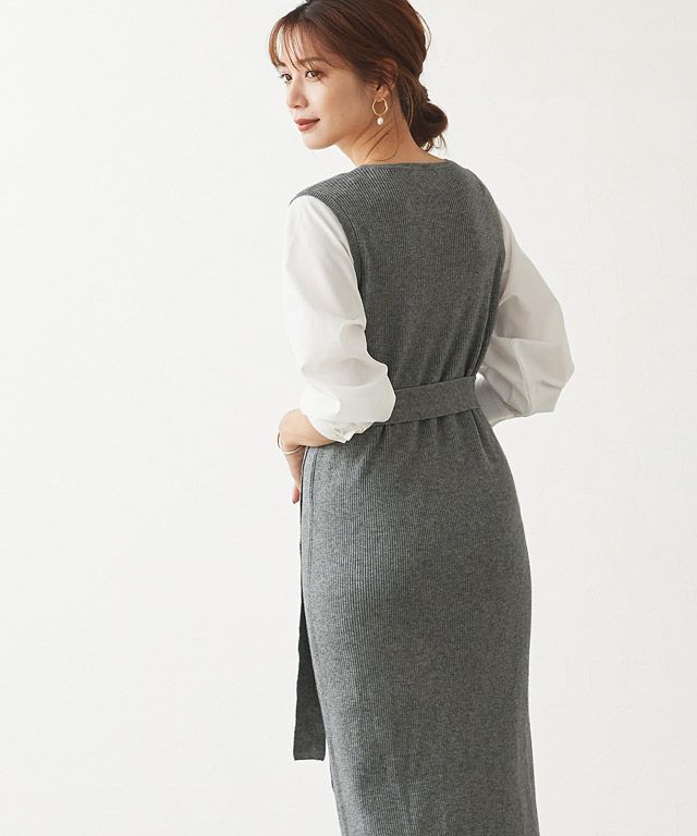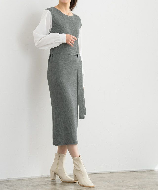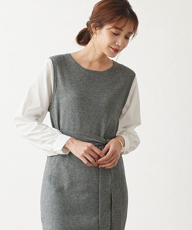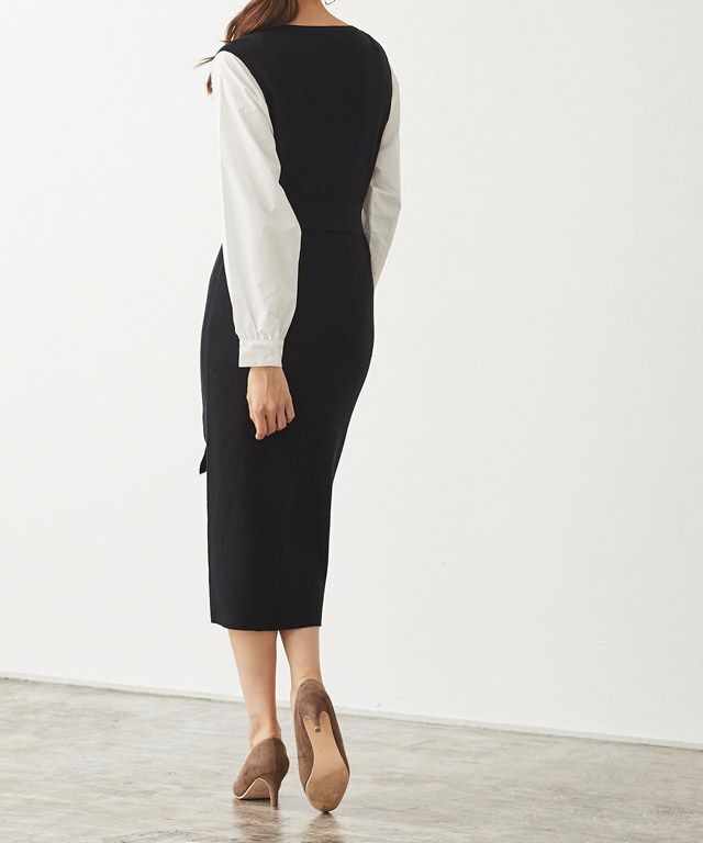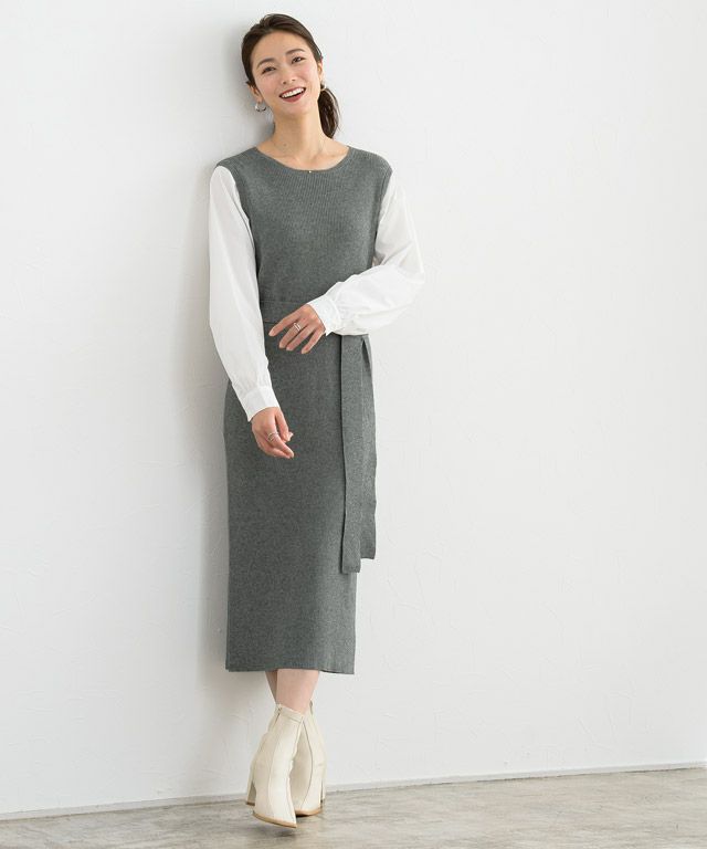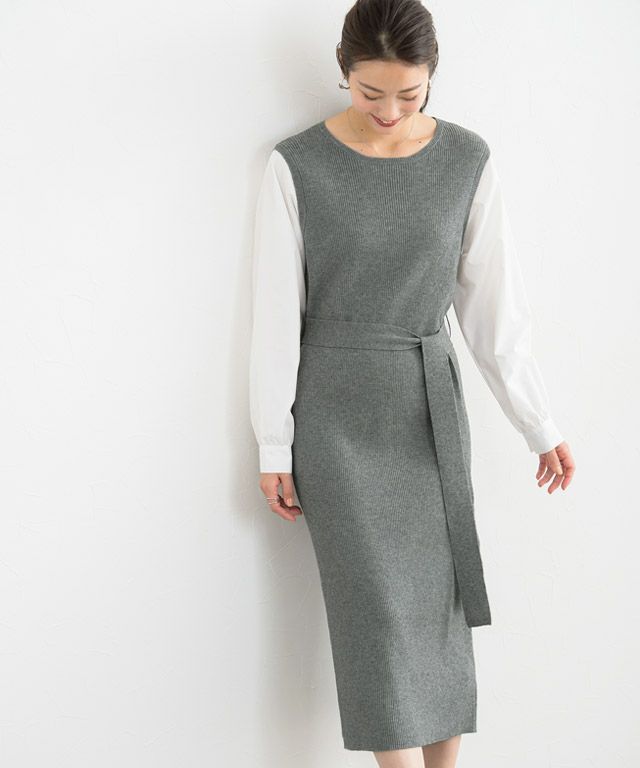 一枚でトレンドと女性らしさも叶える“シャツドッキングニットワンピース”