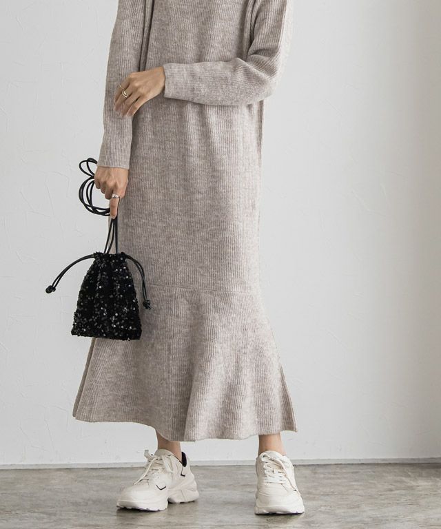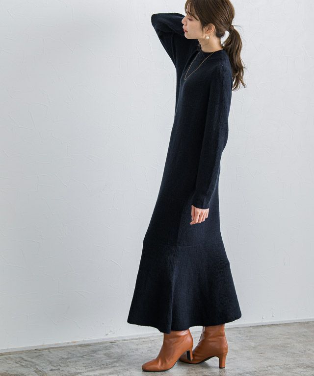 ふんわりウォッシャブル裾切り替えプチハイネックニットワンピース