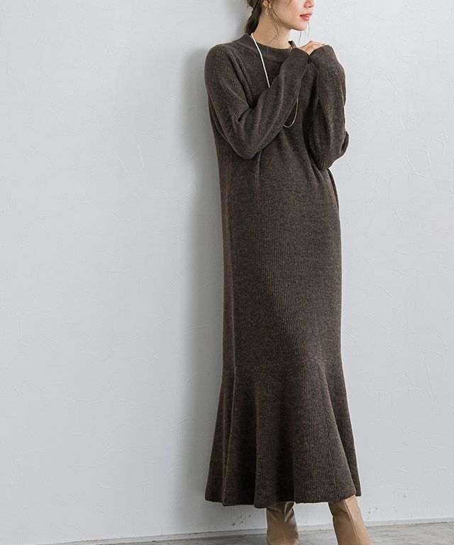女性らしさ漂う“ふんわりウォッシャブル裾切り替えプチハイネックニットワンピース”
