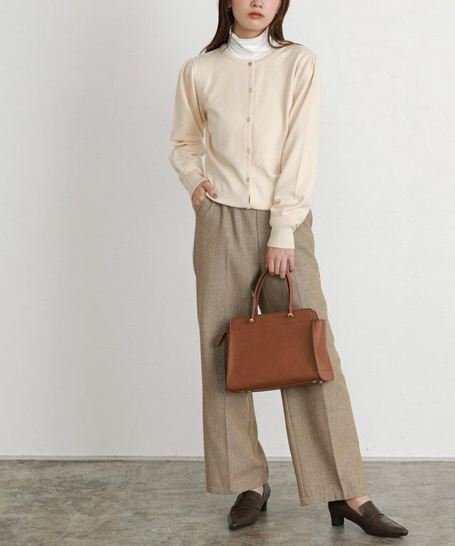 シックで大人っぽい印象に導くヘリンボーン素材。表情のある風合いがスタイリングにアクセントをプラスします。
