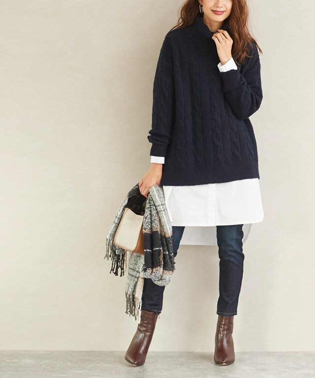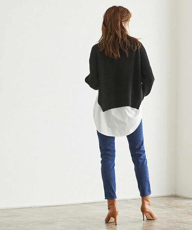 また、ニット製品は生産の過程上「生地を織る際の糸の継ぎ目」繊維の「混紡」、プレス加工、製品洗い加工によって形やサイズ(5cm前後)に誤差が生じる場合がございますが品質上の問題はございません。