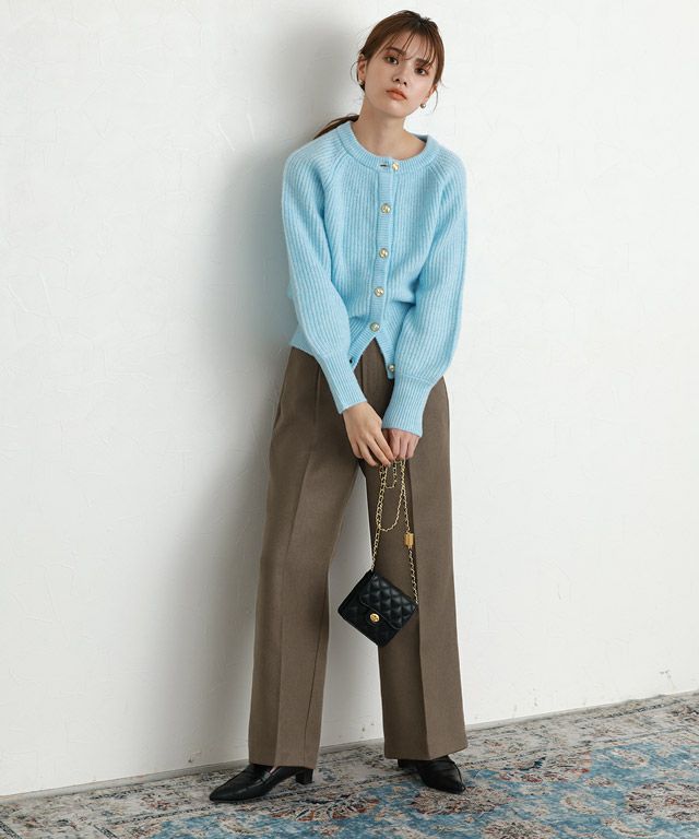 すとんと落ちるシルエットで脚のラインを拾いにくく、綺麗なシルエットを演出します。ウエストに施されたタックとセンタープレスデザインで全体をすっきりとキレイめな印象に。シンプルでON/OFF問わず着用頂けるアイテムです。