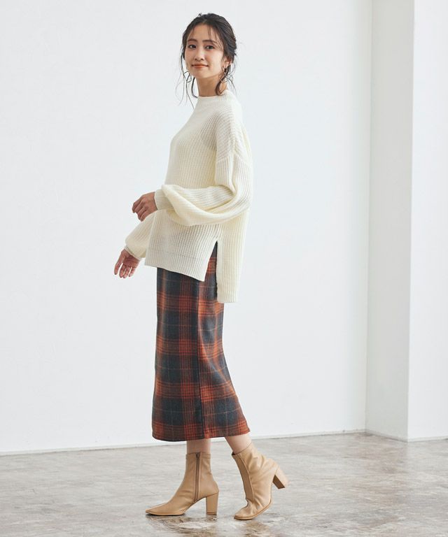 ボリューム袖が女性らしい印象でシンプルながらもアクセントになり、ハイネックが上品見えを叶えます。ボトムを選ばず合わせやすいアイテムです。