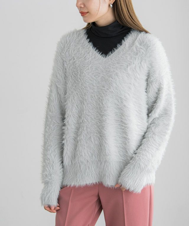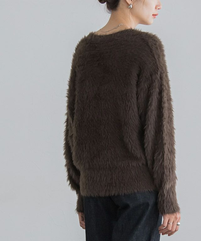 毛足の長いシャギー素材がふわふわで肌触りの良い風合い。トレンド感と表情をプラスしてくれ、シンプルなコーデも華やかな印象に仕上がります。