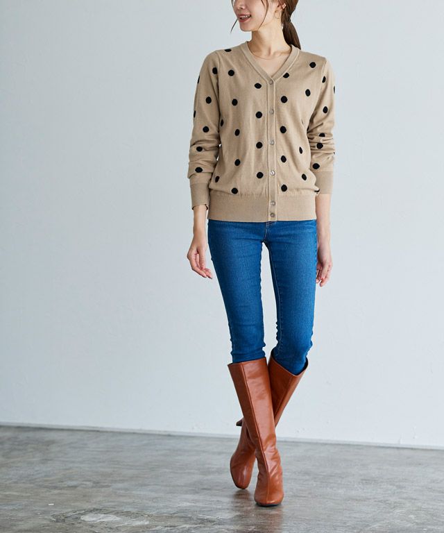 大人が着たいレトロカーデ“ドットニットカーディガン”