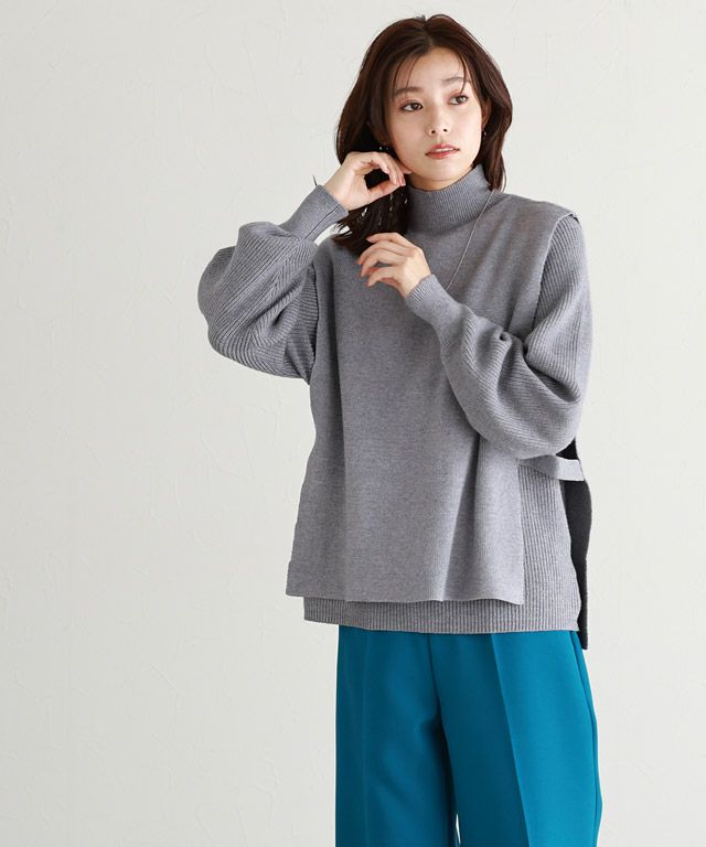 いろんな着回しを楽しめる“ハイネックベスト×パフスリーブニットセット”