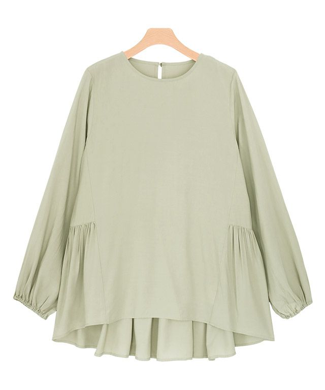 フェミニンながらもトレンド感をプラス“バックギャザーバルーンスリーブブラウス”