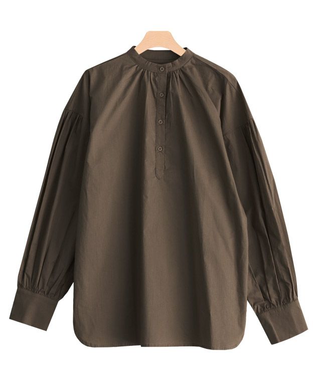 一枚で着映え感のある“バンドカラーボリュームスリーブシャツ”