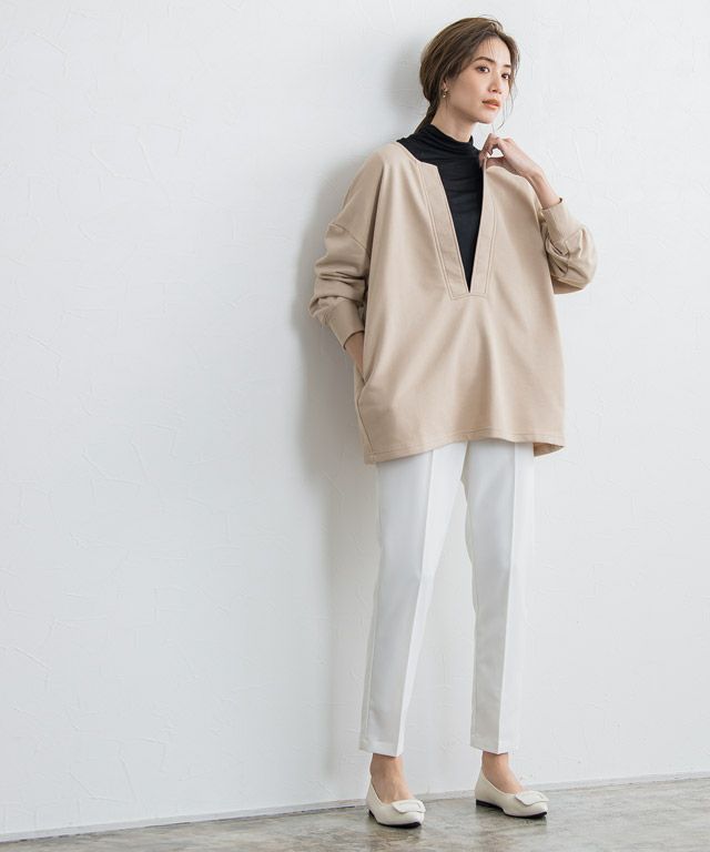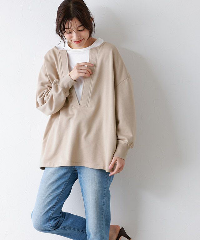 大人見えするカジュアルアイテム“ 深Vネック裏毛プルオーバー”