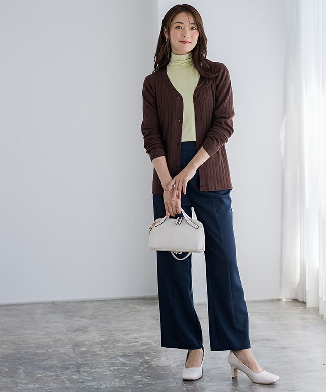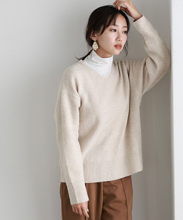 また、ニット製品は生産の過程上「生地を織る際の糸の継ぎ目」繊維の「混紡」、プレス加工、製品洗い加工によって形やサイズ(5cm前後)に誤差が生じる場合がございますが品質上の問題はございません。