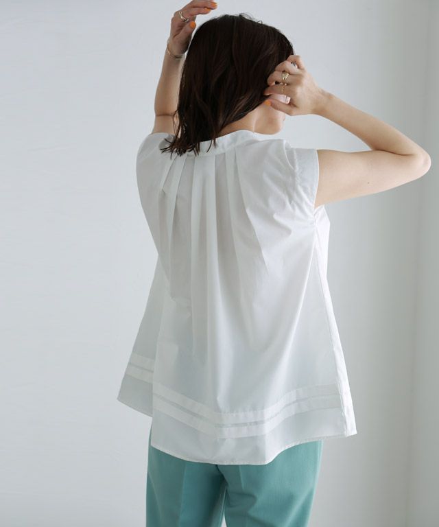 ネックラインに施したタックがふんわりとしたシルエットを作り出し、女性らしい印象に◎前後2wayで表情が異なるのでコーディネートの幅も広がり、楽しめる一枚。裾のタックデザインがスタイリングに程良いアクセントをプラスしてくれます。